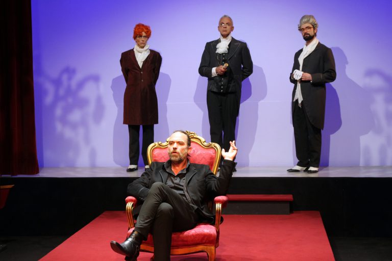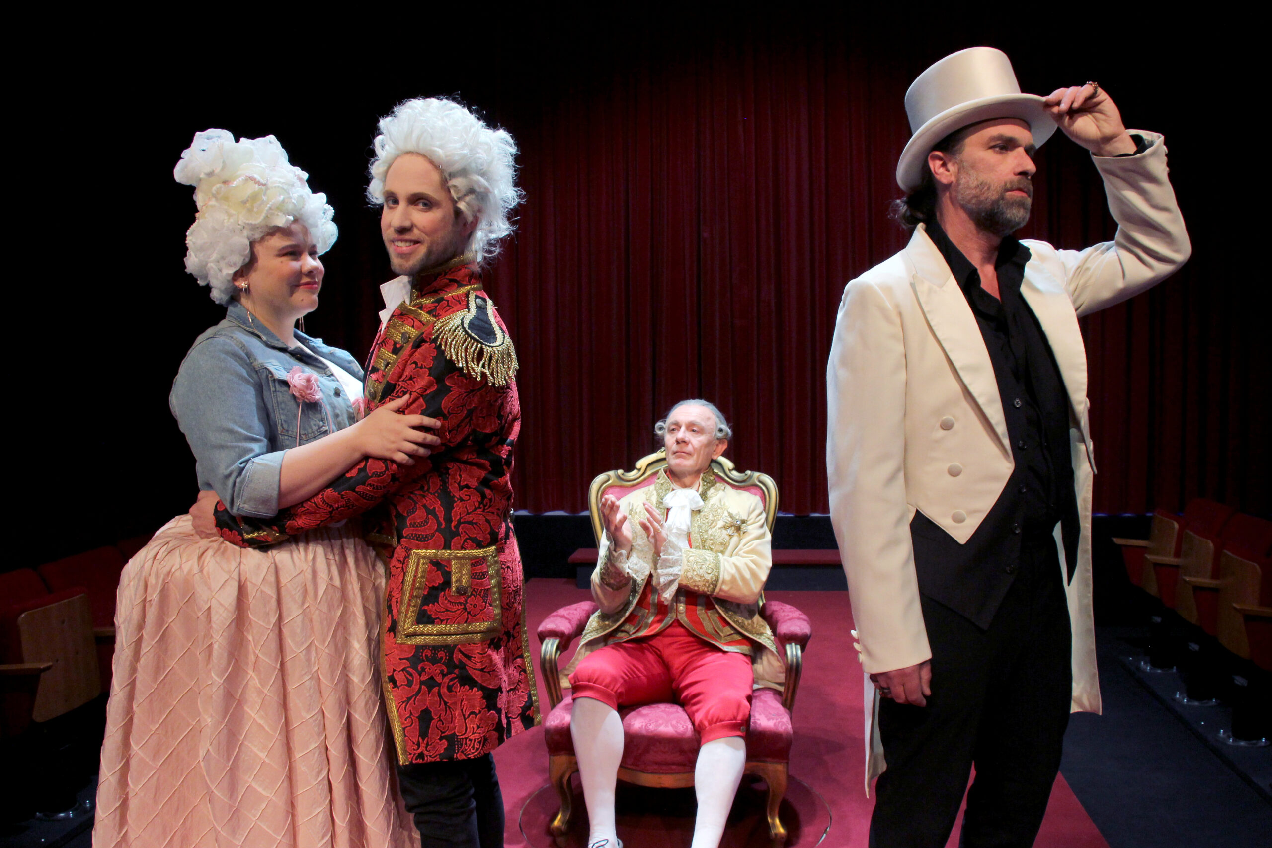 Ida Golda (Constanze Mozart), Markus Freistätter (Mozart), Walter Ludwig (Kaiser Joseph II.) und Daniel Brockhaus (Antonio Salieri)
